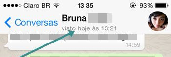 Por padrão o aplicativo exibe no topo das conversas a data e hora que você esteve online pela última vez.