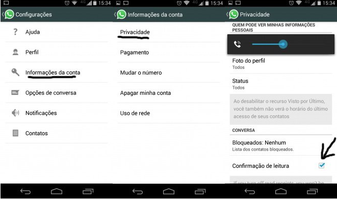 Desde quando implantada esta opção, muita gente teve problemas. A opção de confirmação de leitura permite saber se a pessoa leu sua mensagem. Vale lembrar que temos 3 opções de marcas: