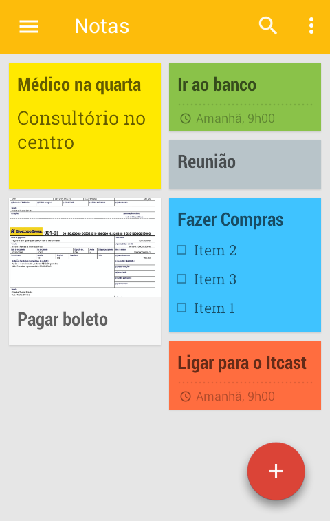 O Keep é um aplicativo que permite criar anotações e lembretes. O visual é bem parecido com os adesivos coloridos, pois ele cria blocos coloridos.