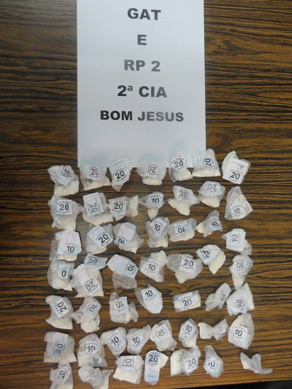 Policiais militares do 29º BPM (lotados na 2ª Cia Bom Jesus do Itabapoana)na tarde desta terça-feira (31/07), após denúncia que um homem estaria conduzindo drogas da cidade de Campos dos Goytacazes para Bom Jesus do Itabapoana, efetuaram patrulhamento na RJ 230, logrando êxito em abordar nas proximidade do trevo de Carabuçu, um veiculo moto Honda Biz placa LPC 6009/RJ, conduzido por Agostinho Lessa Tavares,34 anos, ao sair de um matagal as margens da RJ 230, sendo encontrado com ele, 51(cinquenta e um) papelotes de cocaína pesando 61.3 gramas, um celular e moto.