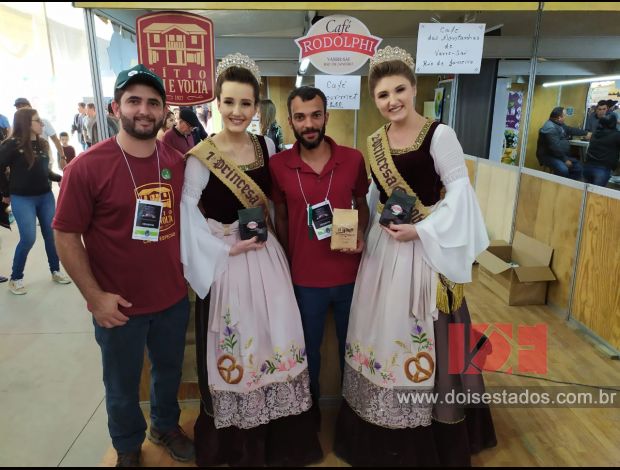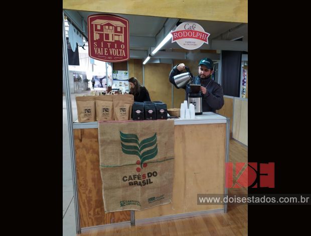 A capital do café fluminense, Varre-Sai, esteve representada na 42ª Expointer, em Esteio (RS). É que entre os dias 24 de agosto e 01 de setembro, os cafeicultores Fidélis Rodolphi, do Sítio Vai e Volta e Felipe Medeiros, da Fazenda Pinheiros-Cafés Especiais, estiveram expondo os cafés especiais na feira.