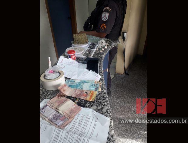 Na manhã desta sexta-feira (08), com um Mandado de Busca e Apreensão, policiais militares da 3ª Cia se dirigiram até a Rua Manoel do Couto Paiva, Bairro Jove em Miracema e apreenderam R$685,00; três balanças de precisão; 10 papelotes de cocaína; quatro buchas de maconha, um tablete de maconha de aproximadamente 200 gramas; anotações de tráfico; tesoura; sacolas de sacolé; fita e Pó Royal. Um suspeito foi detido.