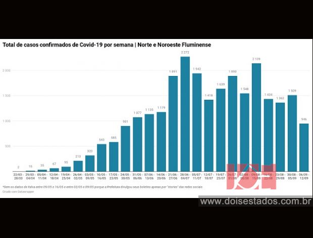 O Norte e o Noroeste vinham de 14 semanas seguidas com mais de mil casos da doença. Entre 30 de agosto e 05 de setembro, foram 1.509 pacientes diagnosticados com a Covid-19, mas a redução para 946 na última semana representou o menor número desde os 901 registros entre os dias 24 e 30 de maio.