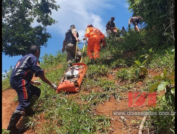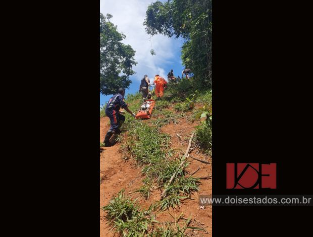 Foi necessário a presença dos militares do Corpo de Bombeiro de Leopoldina e SAMU, pois a vítima estava bastante machucada, não conseguia se locomover e estava aproximadamente a 18 horas no local, sendo retirada através de equipamentos especiais pela mata densa.