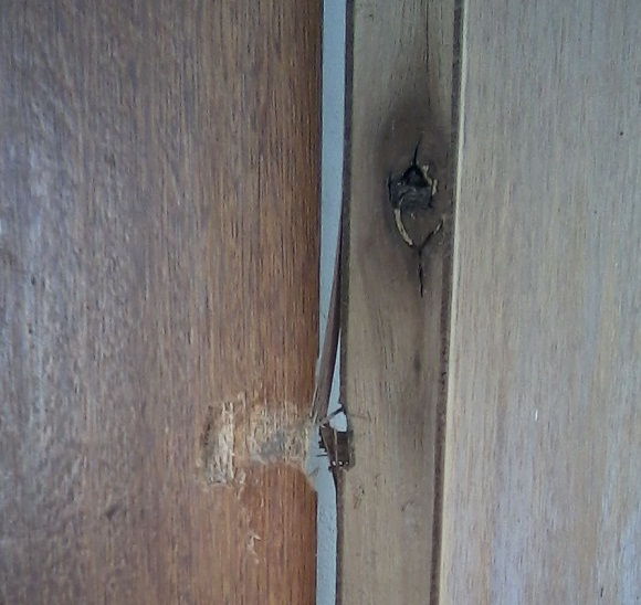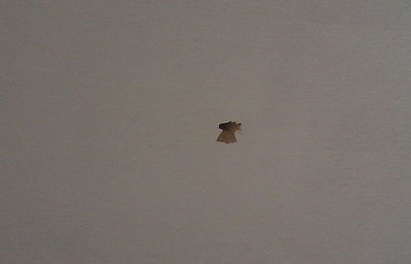 O projetíl, depois de furar uma porta, quebrar o vidro janela, acabou parando em cima da cama.