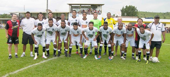O Time de Arthur Sanches jogou com o uniforme rubro negro já a equipe do Zé Romário jogou com um uniforme alvinegro e foi composto por jogadores que defenderam o Aperibeense